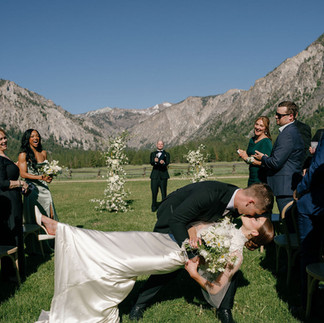 Nothing like an epic backdrop like the Sawtooth Mountains to frame you at the altar. We keep the floral delicate and natural as to not take away from the view but to enhance it with a touch of intention and romance.